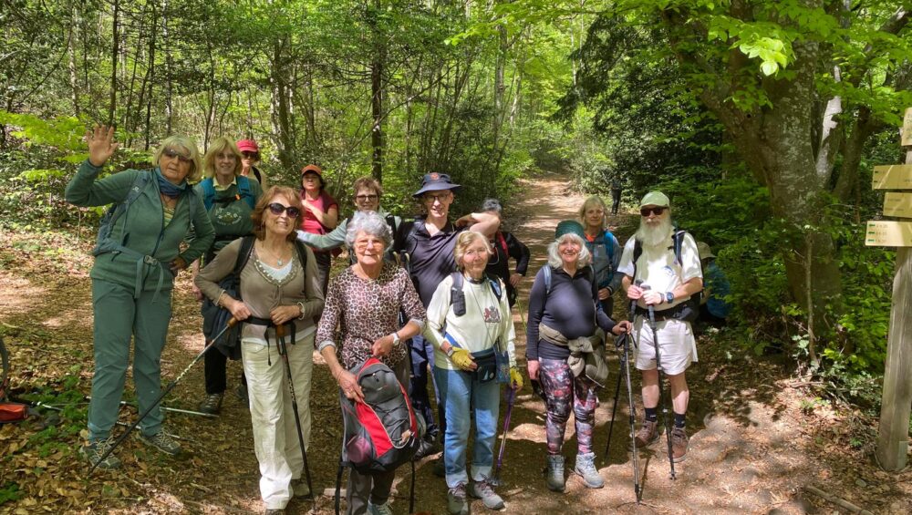 et départ de la course depuis le parking d’Etrembières. Après le château, nous prenons un chemin qui monte au sommet. En file indienne sur le sentier, la montée se fait tranquillement, mais le dénivelé est là. Arrivés au sommet, pique-nique, séance photos, puis descente par l’autre versant qui nous amène au parc de loisirs dans les arbres, où nous pouvons nous restaurer avec des délicieuses citronnades et glaces. Après cette pause bien méritée, nous redescendons au parking de départ. Tous les randonneurs étaient contents de cette belle randonnée !